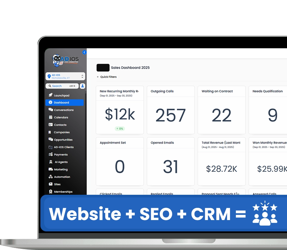 AD-IOS is a digital marketing and automation agency that builds high-converting websites, local SEO systems, CRM tools, and AI-powered lead follow-up for small businesses, med spas, clinics, and service companies.